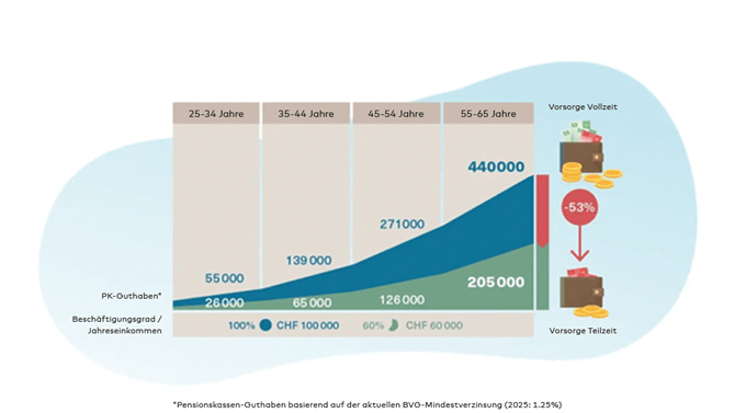 Sie tragen viel Verantwortung – für Ihr Kind, Ihre Familie und Ihren Beruf. Dabei bleibt die eigene Vorsorge oft im Hintergrund. Genau hier entstehen Lücken: Teilzeitpensum, Babypause oder unbezahlte Care-Arbeit wirken sich direkt auf Ihre finanzielle Zukunft aus.