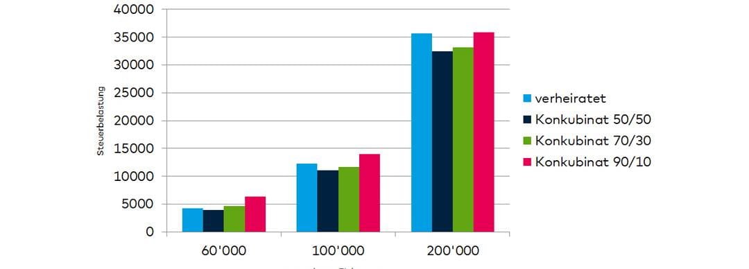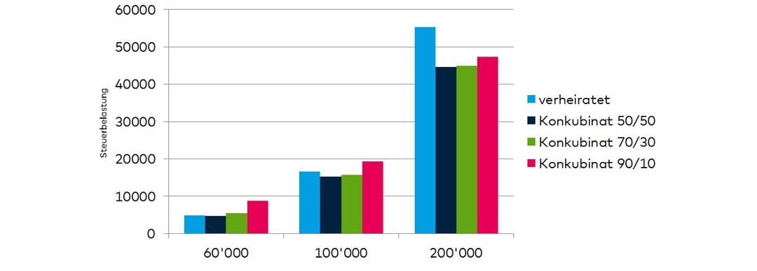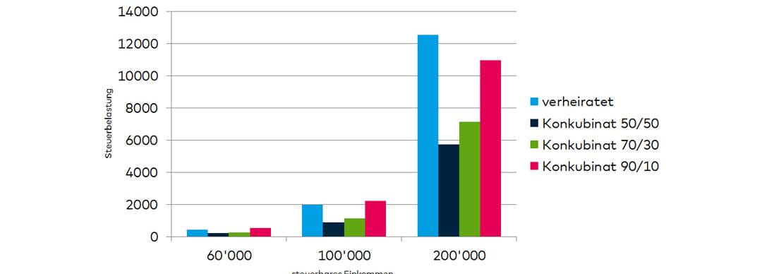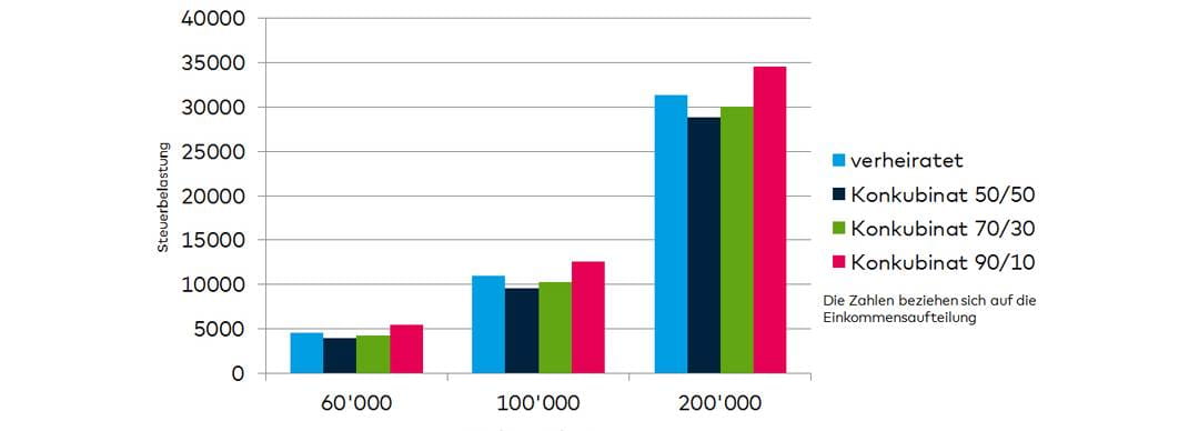 Die Heiratsstrafe bedeutet, dass Ehepaare im Vergleich zu nicht-verheirateten Personen unter gleichen Voraussetzungen, d.h. mit gleichem Lohn, steuerlich schlechter gestellt sind.