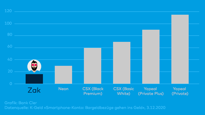 Wer […] Zak benutzt, kann die Kosten für Bargeldbezüge gegen null senken, wenn er die hauseigenen Automaten nutzt.»K-Geld, 03.12.2020