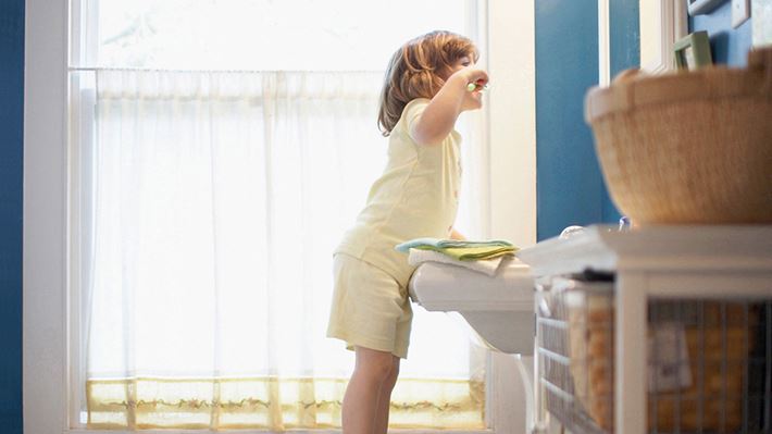 Ausser im unmittelbaren Duschbereich sollten die Oberflächen im Bad möglichst natürlich und atmungsaktiv sein. Beispielsweise ist eine mit Ölfarbe gestrichene glatte Wand hygienischer als Fliesen – das liegt an den Fugen. Die sind schwer zu reinigen und angenehmer Lebensraum für Bakterien und Schimmelpilze. Um den Schimmel loszuwerden, werden Putzmittel benötigt, die nicht immer ökologisch unbedenklich sind. Verzichten Sie also wo möglich auf Fliesen.