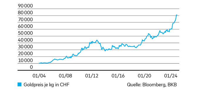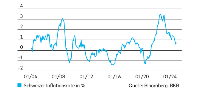 Um den auch 2025 bestehenden Herausforderungen zu begegnen, bleibt eine breit diversifizierte Anlagestrategie für uns unerlässlich. Aktien und Obligationen sind zentrale Bausteine in einem ausgewogenen Portfolio. Krisen, geopolitische Unsicherheiten sowie die steigende globale Staatsverschuldung haben uns darin bestärkt, dass Gold eine sinnvolle Beimischung in den Portfolios darstellt. In unseren Mandaten sind wir strategisch mit 5% in Gold investiert.