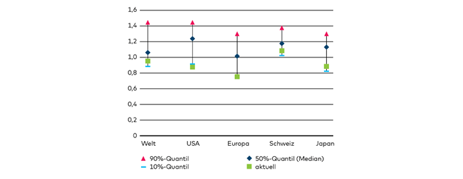 Auch wenn die früher vorherrschenden Bewertungsprämien nicht gänzlich wiederkehren sollten, bietet das aktuelle tiefe Niveau Erholungspotenzial.