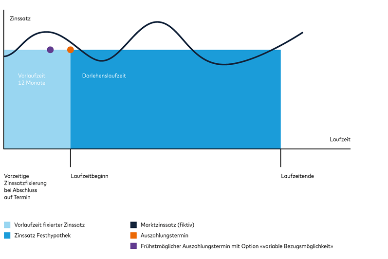 Die Zinsen für Festhypotheken hängen von verschiedenen Faktoren ab, wie der gewünschten Laufzeit und der aktuellen Marktsituation. Je länger die Laufzeit, desto höher ist in der Regel der Zinssatz – dafür bleibt dieser während der gesamten Laufzeit stabil und bietet Ihnen volle Planungssicherheit.