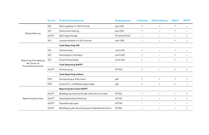 Verfügbare Meldungstypen im ISO- und SWIFT-Format