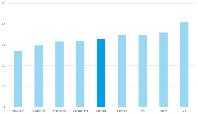 Anteil reicht von 30% im Kanton Uri bis zu 59% im Kanton Schwyz