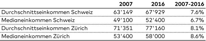 Haushaltseinkommen in CHF, Wachstumsrate in %