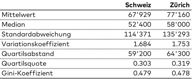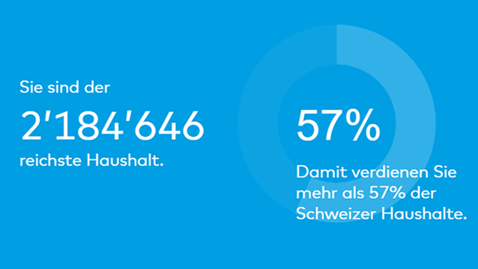 10% der Haushalte verdienen mehr als 131 400 CHF – 50% der Haushalte verdienen weniger als 53 900 CHF