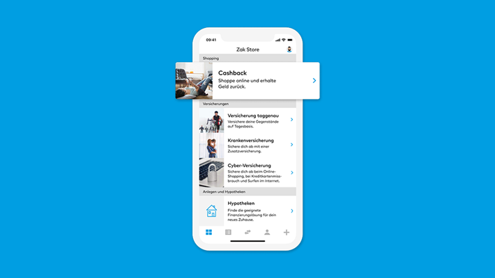 Klicke auf «Cashback» im Zak Store.