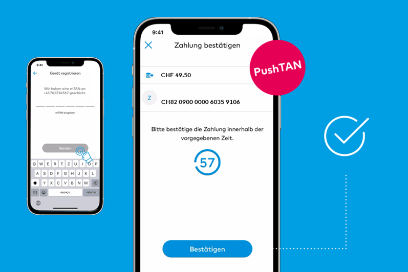PushTAN anstatt SMS-CodeBezahle Rechnungen ohne die manuelle Eingabe des SMS-Codes (bisher bekannt als mTAN).