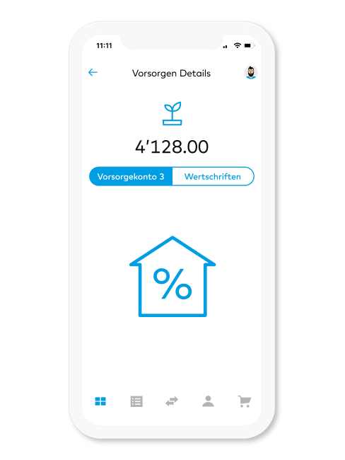 ** Wenn du Vorsorgen mit Wertschriften wählst, dann wird zusätzlich dein Risikoprofil durch ein paar Fragen ermittelt. Das heisst, wir analysieren deine Risikobereitschaft und deine Ertragserwartung. Du wählst darauf aufbauend deine Anlagestrategie und legst deinen Sockelbetrag fest. Alle über den Sockelbetrag hinausgehenden Einzahlungen auf dein Vorsorgekonto 3 werden dann in Wertschriften investiert.