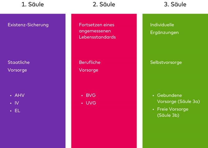 Die Alters-, Hinterlassenen- und Invalidenvorsorge in der Schweiz ist in ihrer Art einmalig. Sie besteht aus drei Säulen:- der staatlichen Vorsorge