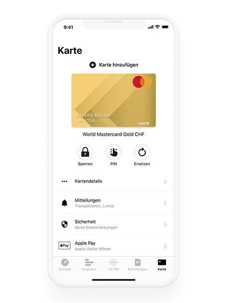 Mit einer App alle Ihre Karten sicher und einfach verwalten, egal ob Kreditkarten, Debitkarten oder Prepaid-Karten. Möglich macht’s die one App von Viseca. Sie behalten damit den Überblick über Ihre Karten, zahlen sicher online und analysieren Ihre Ausgaben. Zudem nutzen Sie Services wie beispielsweise Kartensperrung oder Ersatzkartenbestellung.