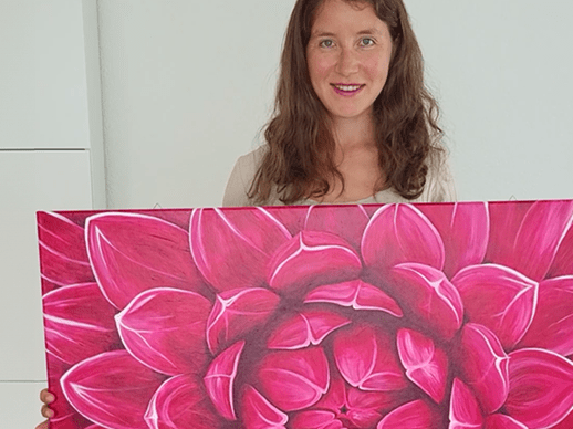 Cette artiste touche-à-tout s’investit corps et âme dans chaque toile et y consacre beaucoup de temps. Elle se décrit elle-même comme une perfectionniste patiente. Car il faut parfois 40 heures de travail pour qu’elle soit enfin satisfaite du résultat. Mais sa passion donne naissance à une œuvre intemporelle.