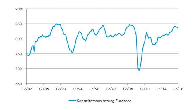 Il n’est toutefois guère vraisemblable que la situation se maintienne comme les années passées. Il suffit de considérer les indicateurs concomitants et légèrement retardés pour s’en rendre compte. Le taux d’utilisation des capacités a de nouveau augmenté ces dernières années. Dans la zone euro en particulier, il a dans la pratique renoué avec ses précédents niveaux record.