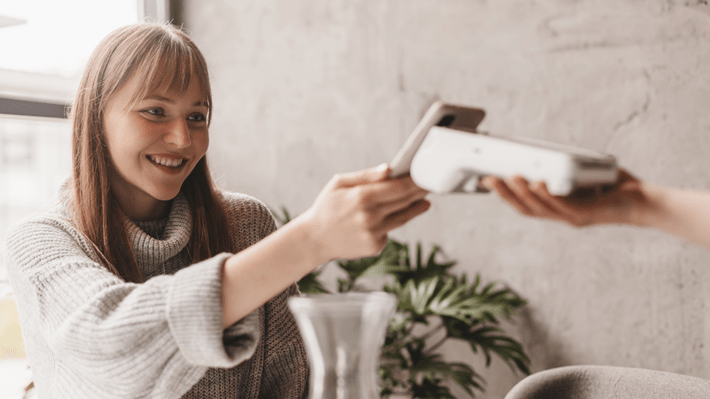 «Sans contact» signifie qu'il vous suffit de placer votre smartphone à proximité d'un terminal de paiement et celui-ci s'effectue sans contact direct. La condition préalable est un smartphone ou un appareil connecté avec une puce NFC intégrée (= Near Field Communication) et une appli de paiement. Celle-ci est alors reliée soit à votre carte de crédit, soit directement à votre compte bancaire via Visa Debit.