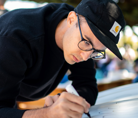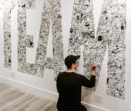 J’ai conçu un clip vidéo pour mon travail de maturité. Je rêvais alors de devenir réalisateur, mais il aurait fallu déménager à Berlin, à Los Angeles ou à New York. Le cours propédeutique de l’École d’Arts Visuels Berne et Bienne m’a permis d’envisager une autre voie. J’ai ensuite rejoint UBS pour un stage «allround» et un programme de promotion de deux ans. En plus du back-office et du trading, j’ai commencé à constituer des équipes et des communautés pendant mon temps libre. Mais donner libre cours à ma créativité me manquait tellement que j’ai démissionné et lancé en 2016 un défi créatif de lettering sur 100 jours.