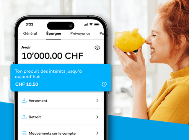 En avril, nous avons complété notre offre en y ajoutant un compte d'épargne numérique. Il propose un taux d'intérêt plus attrayant que le compte Zak classique: idéal pour celles et ceux qui souhaitent faire travailler activement leur argent en toute simplicité. Avec l'Épargne dans Zak, le compte Zak et «Prévoyance dans Zak», tu as les services bancaires directement dans la poche – taux d'intérêt attrayant inclus.