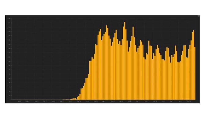 Cette amélioration des perspectives conjoncturelles aux États-Unis est assombrie actuellement par une reprise de la hausse du nombre de cas de nouvelles infections au Covid-19 confirmés en laboratoire. Mais la situation n’a pas encore beaucoup changé, car aux États-Unis, contrairement à l’Europe, le nombre quotidien de nouveaux cas n’a encore jamais connu un net recul.