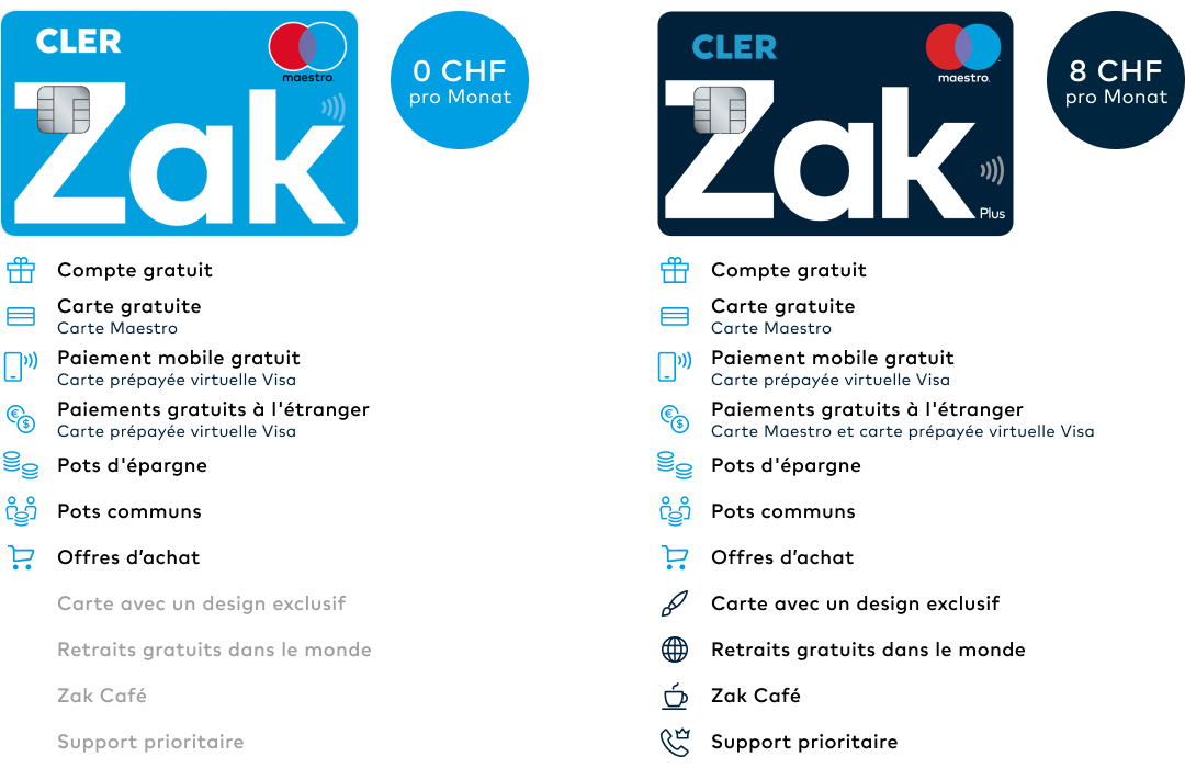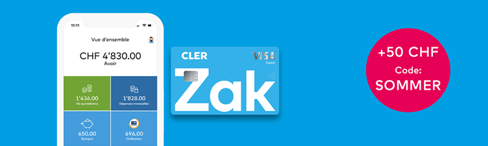 Zak est une offre de la Banque ClerProfite d'un conseil personnalisé dans l'une de nos succursales. Aucune autre néobanque en Suisse ne t’offre une telle valeur ajoutée.