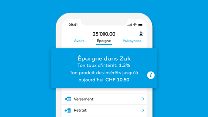 - Bénéficie d'un taux d'intérêt attrayant de 0,55% jusqu'à un avoir en compte de 25 000 CHF.