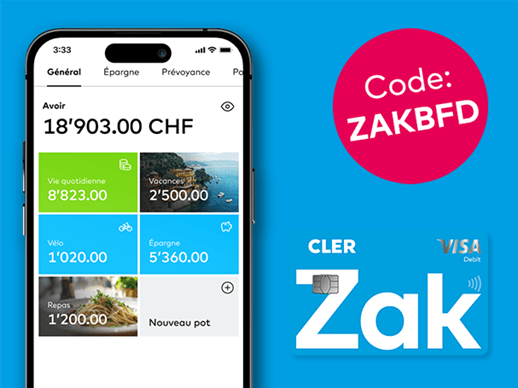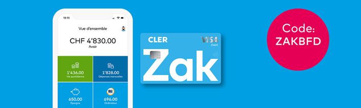 Zak est une offre de la Banque Cler. Cela signifie que, contrairement à neon ou à des concurrents étrangers comme N26 ou Revolut, nous ne sommes ni une start-up ni une fintech. Derrière Zak se cache une banque suisse ayant pignon sur rue. Nos clients profitent ainsi de notre longue expérience.
