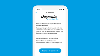 Avec Zak, tu as ton centre commercial directement dans ta poche. Fais du shopping en ligne et obtiens de l'argent en retour directement sur ton compte Zak.