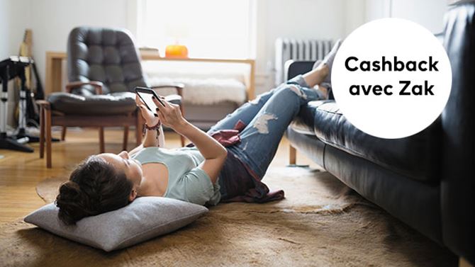 Avec Zak, tu as ton centre commercial directement dans ta poche. Fais du shopping en ligne et obtiens de l'argent en retour directement sur ton compte Zak.