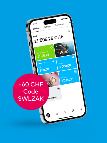 Ouvrir un compte maintenant et recevoir 60 CHF d'avoir initial.