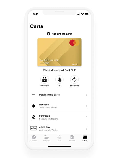 Gérez l'ensemble de vos cartes en une seule appli et en toute sécurité, qu'il s'agisse de cartes de crédit, de débit ou prépayées. C'est possible grâce à l'appli one de Viseca. De la sorte, vous conservez une vue d'ensemble de vos cartes, réglez en ligne de manière sécurisée et pouvez examiner vos dépenses. En outre, vous disposez de services tels que le blocage de la carte ou la commande d'une carte de remplacement.