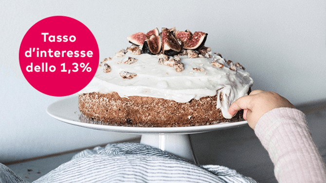 Immagine simbolica per il risparmio: un bambino prende con il dito un po' di glassa dalla torta sul tavolo