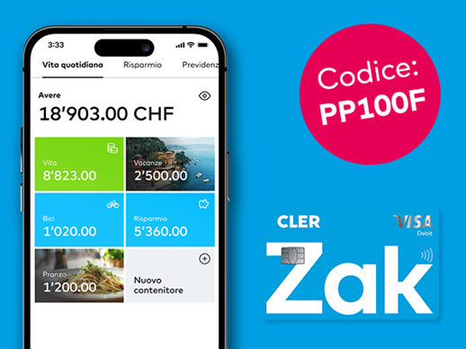 Sì. Con Zak il conto e la carta Visa Debit sono davvero gratuiti, come pure i pagamenti con la carta in Svizzera nonché i prelevamenti in contanti presso i Bancomat della Banca Cler. All'estero effettui pagamenti a condizioni agevolate senza spese di trattamento supplementari. Non conta quanto denaro hai sul conto e per quanto tempo rimani cliente Zak. E non si tratta di un'imperdibile offerta lancio, ma della nostra tariffa ordinaria.