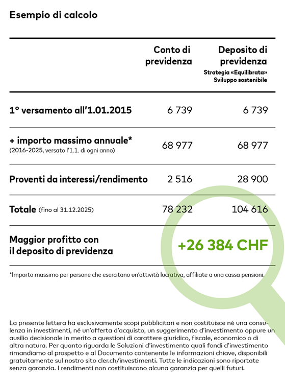 Le presenti informazioni hanno esclusivamente scopi pubblicitari. Per quanto riguarda i fondi d'investimento strategici rimandiamo al prospetto e al Documento contenente le informazioni chiave, disponibili gratuitamente sul nostro sito cler.ch oppure in forma cartacea presso tutte le succursali della Banca Cler, la direzione del fondo o la banca depositaria.