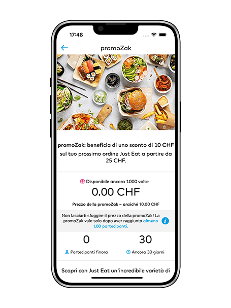 Partecipa alle promoZakPartecipando ad una promoZak vai incontro a un'offerta vincolante, tuttavia in un primo momento non devi intraprendere nulla. Solo dopo la realizzazione della promoZak ti verranno fornite le informazioni sui passi successivi.